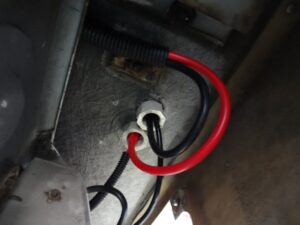 そしてケーブルを通すのですが、プラスマイナスをセットで通してたのを、プラスはプラス、マイナスはマイナスでまとめて通す様に変更しました。