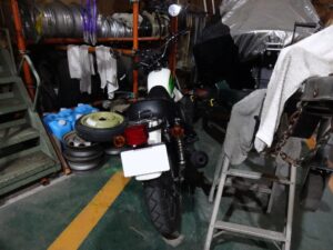 上の子が250TR乗って帰って来たけど、フロントフォークからオイルは漏れてるし、ブレーキフルードがなぜか減ってるので、暫くコチラで保管する事になりました。