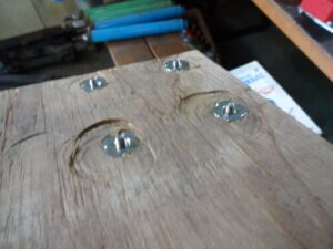 カットオフスイッチはナゼか?裏側からしかビス留め出来ない造りなので、打ち込みナットをコンパネ裏側から叩き込んで、上からビス留め出来る様にしました。