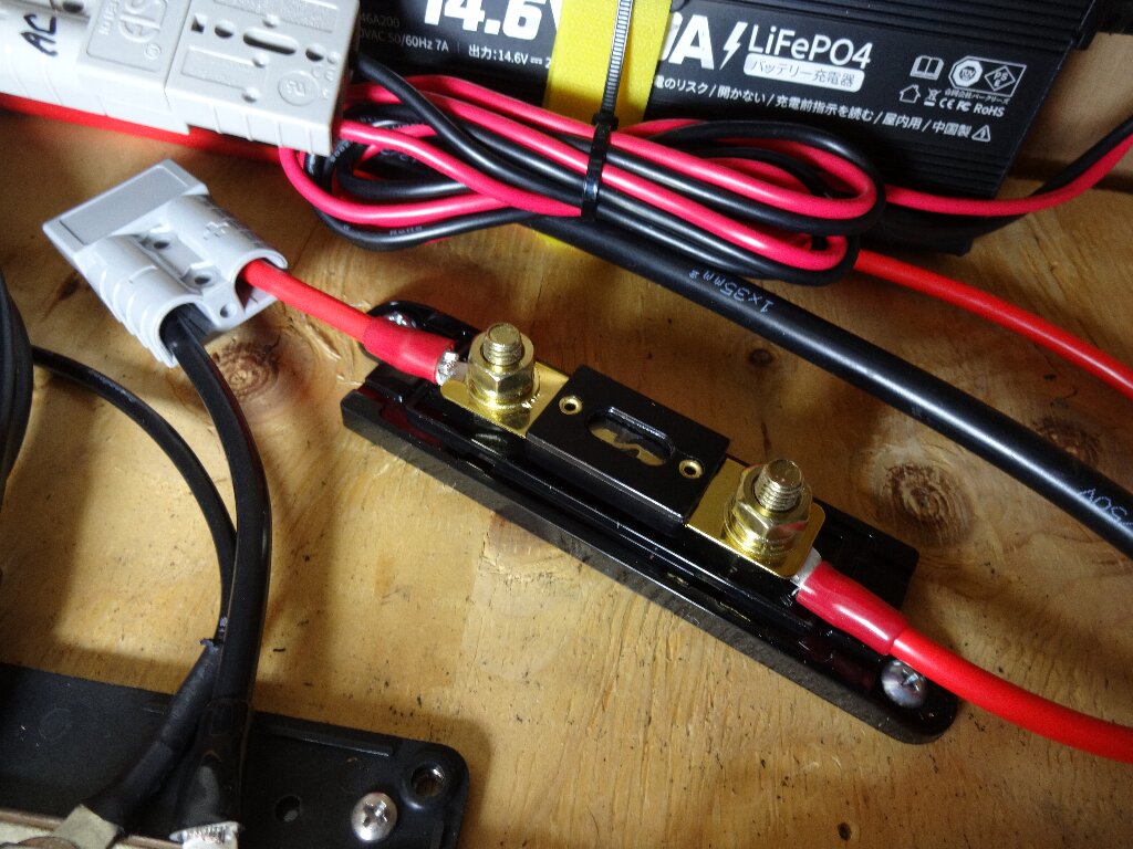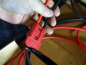 まずは走行充電のメインバッテリー用の配線から。アンダーソンコネクターは8sqぐらいだとかなりスカスカでした、、、