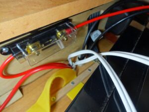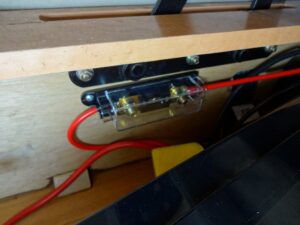 そしてプラス側配線をヒューズボックスに接続して、60Aのヒューズもセットしておきました。ココは40Aで良かったのですが、手持ちが100Aと60Aしか無かったのよ、、、