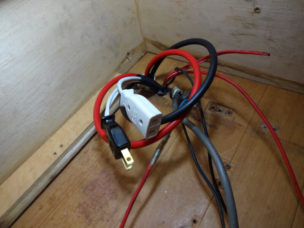 2ndシート下にはオスとメスのプラグをソレゾレ取り付けました。オスはインバーターの出力に、メスはAC充電器にそれぞれ接続する為の物です。