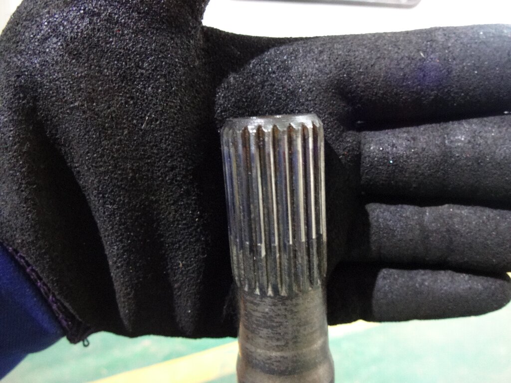 昨日ピンボケだった左のドライブシャフトのスプラインはこんな感じです。舐めては無いけど当たりがキツイ感じです。