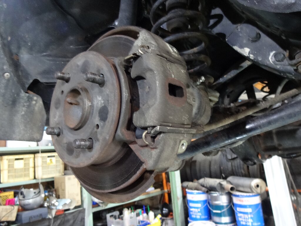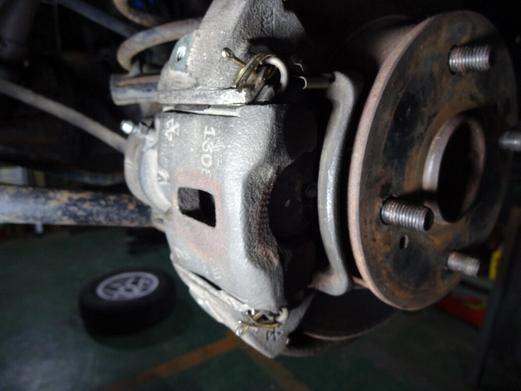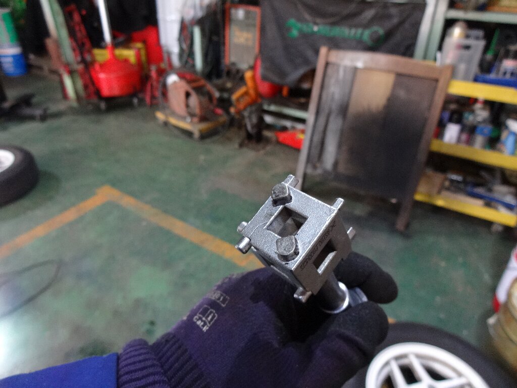 ラチェットハンドル使って回しますが、固いのでキャリパー保持しながら回すのに苦労します。