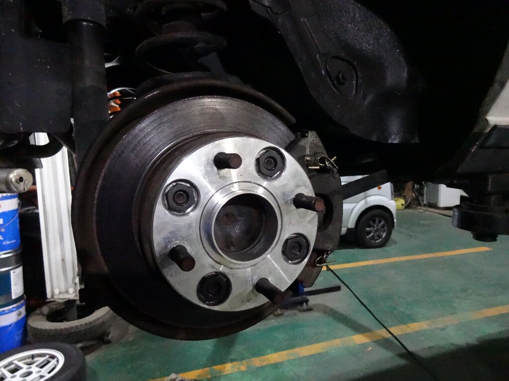 右側は下側のクサビを入れ直してからキャリパーカバー取り付けて、ワイドトレッドスペーサーも装着しました。