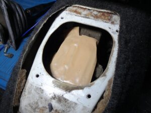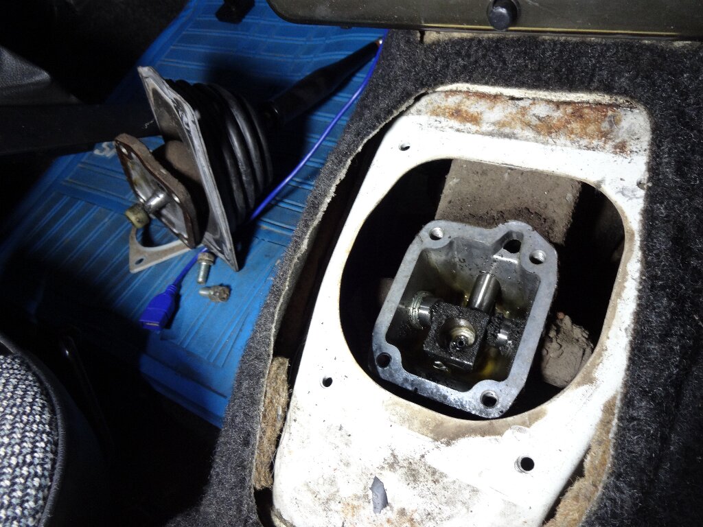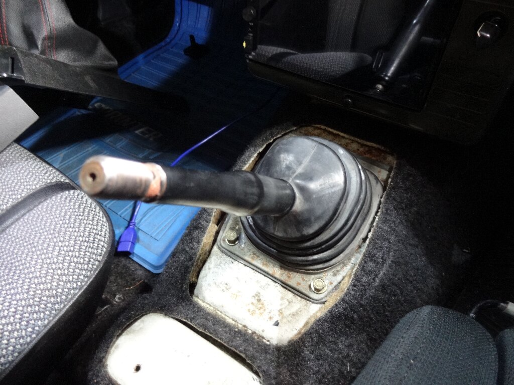 ゴムブーツ外してから、シフトロッドを抜くべくミッション側のカバーも取り外します。