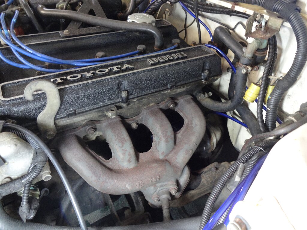 まずはファイヤーウォールの隙間からメガネレンチ挿し込んで上部2箇所のボルトを緩めました。
