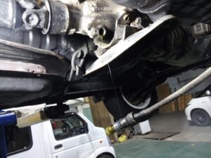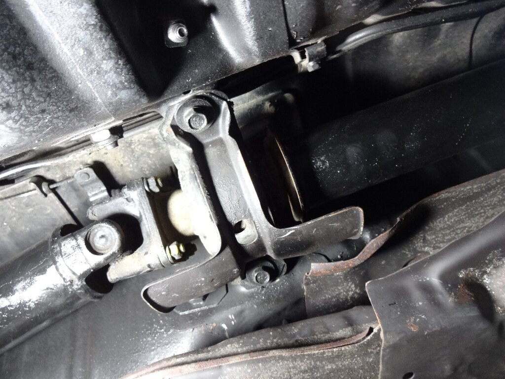 ミッションジャッキ持って来て、ミッションを少し持ち上げてミッションマウントを外します。