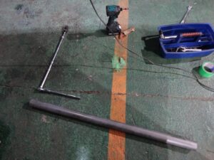 ありったけのエクステンション接いで17ミリのソケットを先端に取り付け、