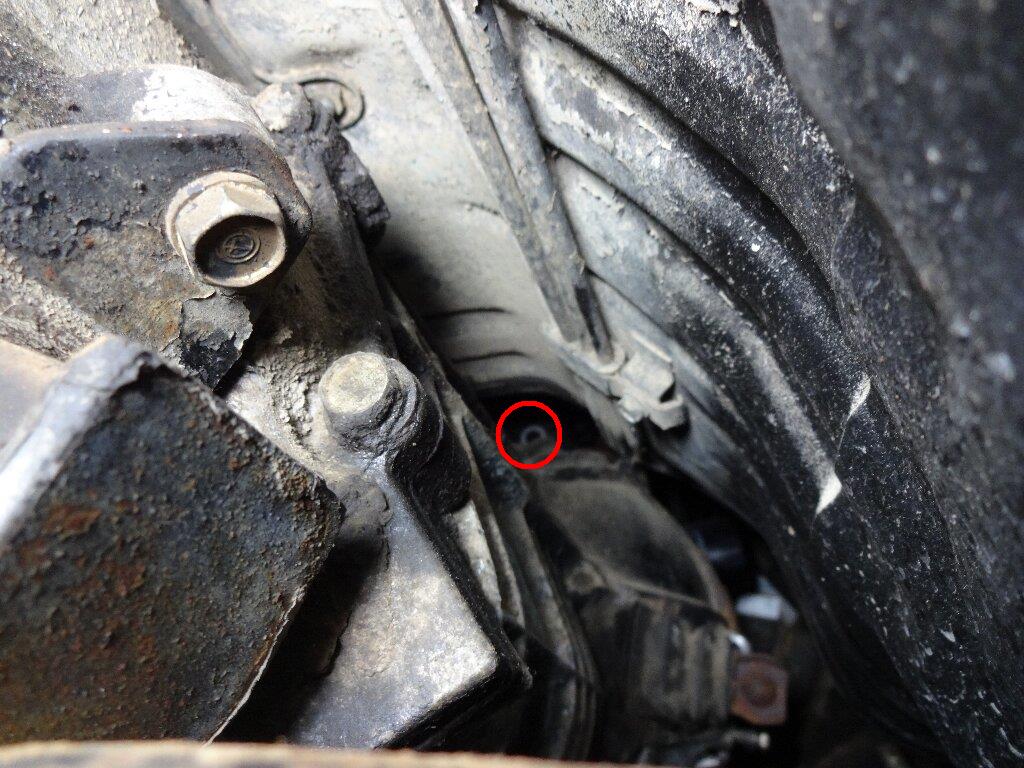 ちなみにミッション側から覗くと、遥か先ですが締結ボルトの挿さってた穴が見えます。