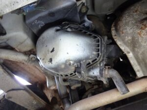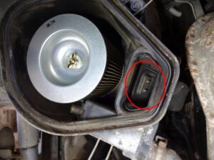 エアクリーナーからの吸気ダクトなんですが、赤丸部分に切り替えのフラップが付いてて、コレが暖気時と暖気終了時で切り替わるハズなんですよね。
