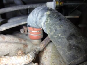 ちなみに現状は冷間時なんですが、繋がるホースの先はエキマニの遮熱板の部分に挿さり、