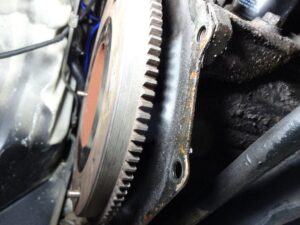 念の為、リングギヤを確認しましたが特に削れた形跡はありませんでした。件の異音はセルモーターのピニオンが滑ったってのでは無さそうです。
