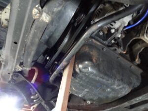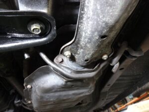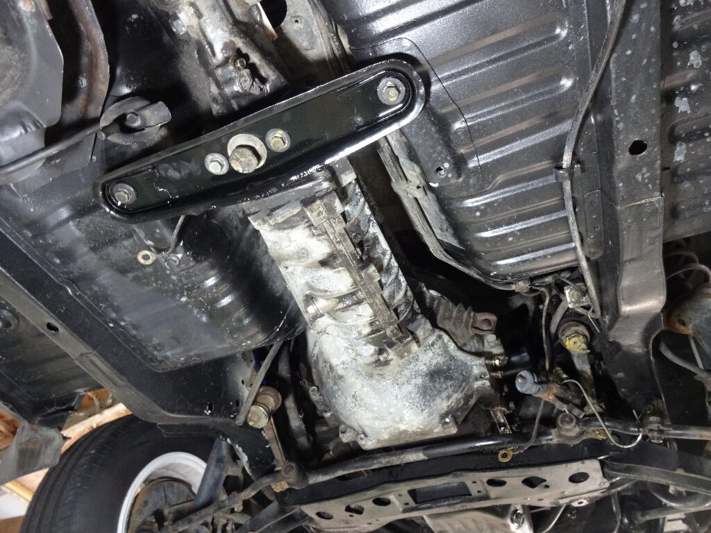 ひと通り締め込んで、本締めまで完了したら、ミッションジャッキで持ち上げてマウントを留めました。