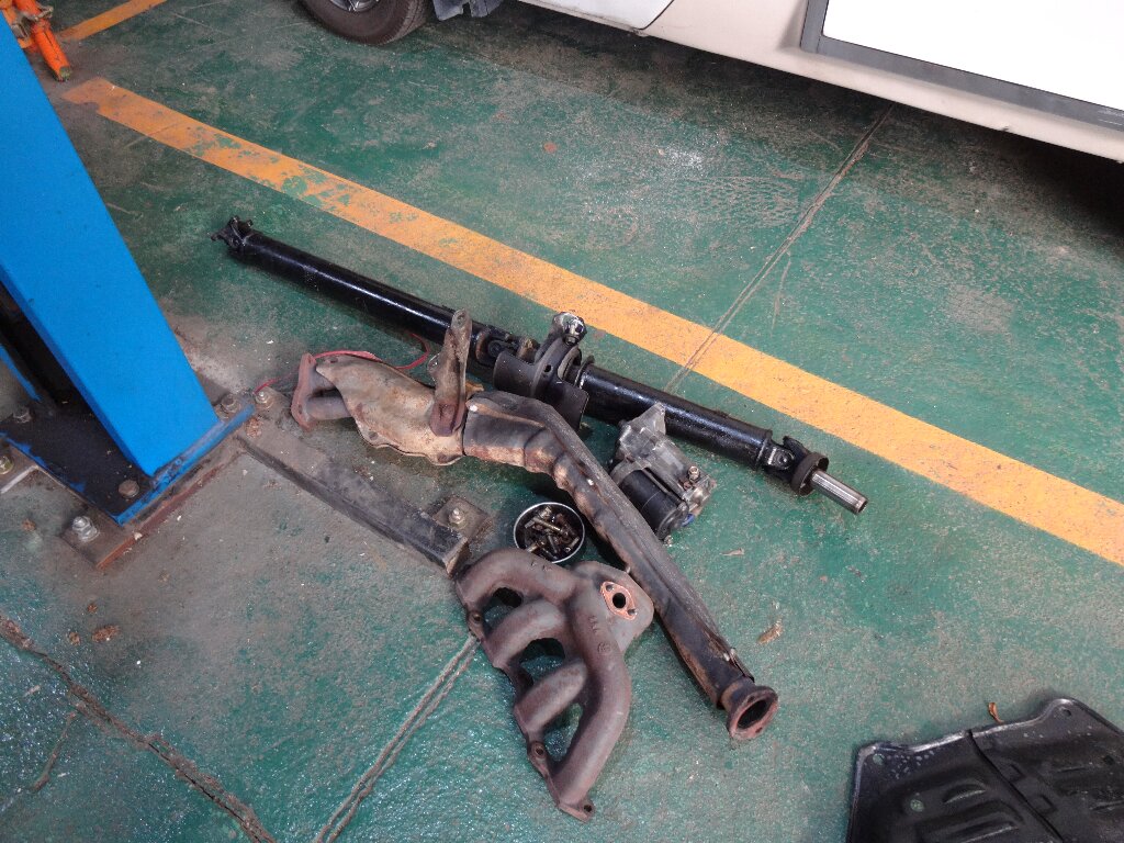 やはり2柱リフトとミッションジャッキがあると作業がスムーズです。この時点で本日のノルマは達成しました。