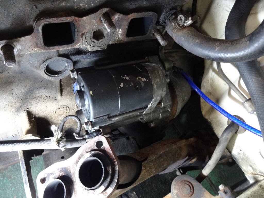 そのままエンジンとの締結ボルトを締め込んで行きます。使ったソケットはエクステンション繋いで先端まで1Mぐらいになりました。