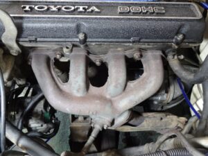 エキマニを取り付けてフロントパイプと繋ぎました。