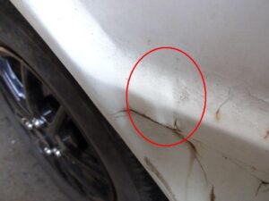 このフェンダーアーチに繋がるプレスラインに段差が、、、