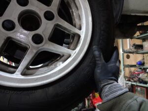 んで何気にリアタイヤを手で回すと、反対側のタイヤもドライブシャフトも回る事無くガコっと回りました。