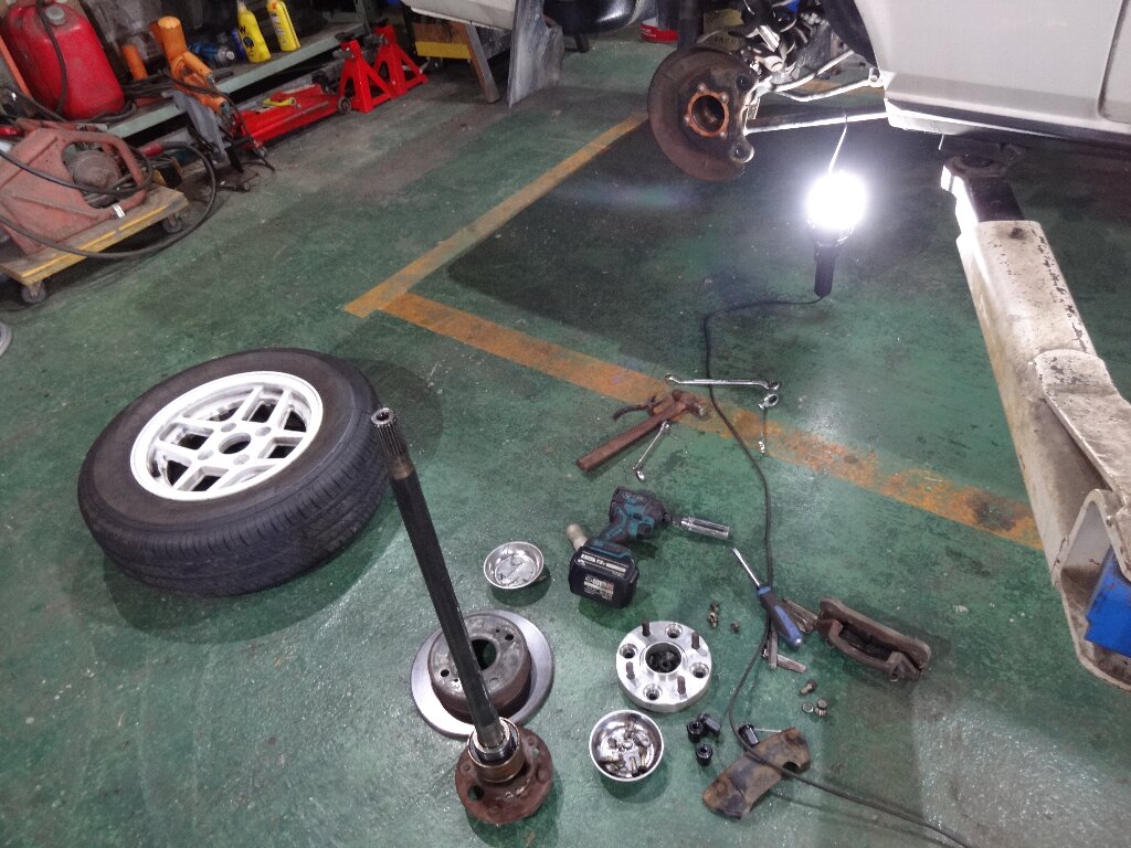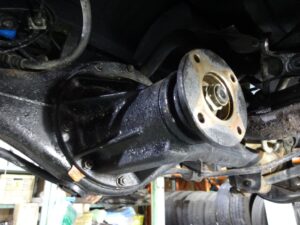 という訳で、今付いてるLSDを元のオープンデフに戻すべくドライブシャフトを抜き取ります。