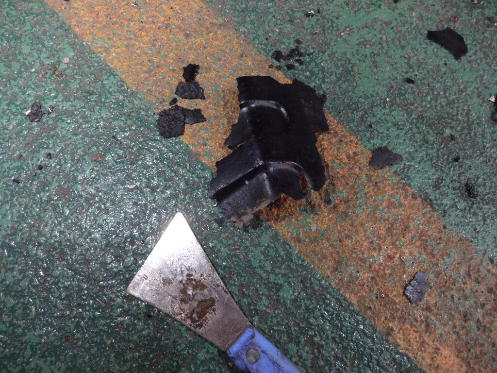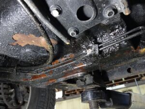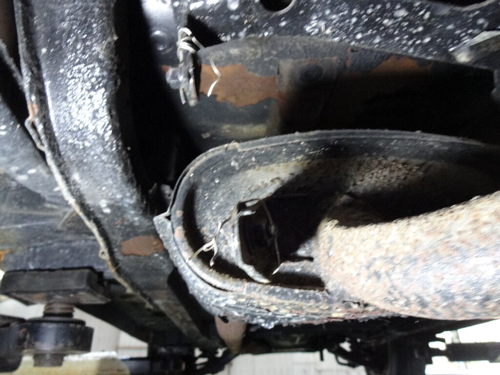 タイコ前後にあるハンガーがゴムブッシュ部分で剥がれ落ちてました。
