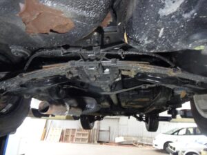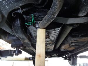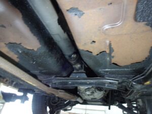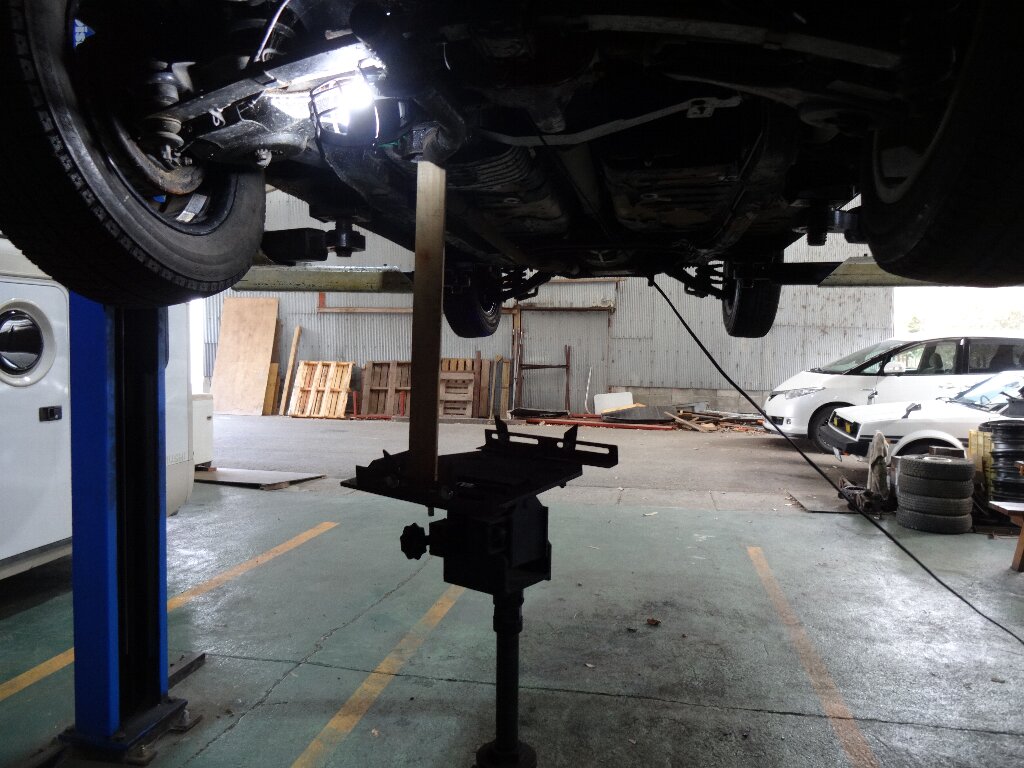 朝リフトのところに移動しておいたベレットを持ち上げて下回りを確認します。