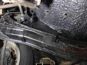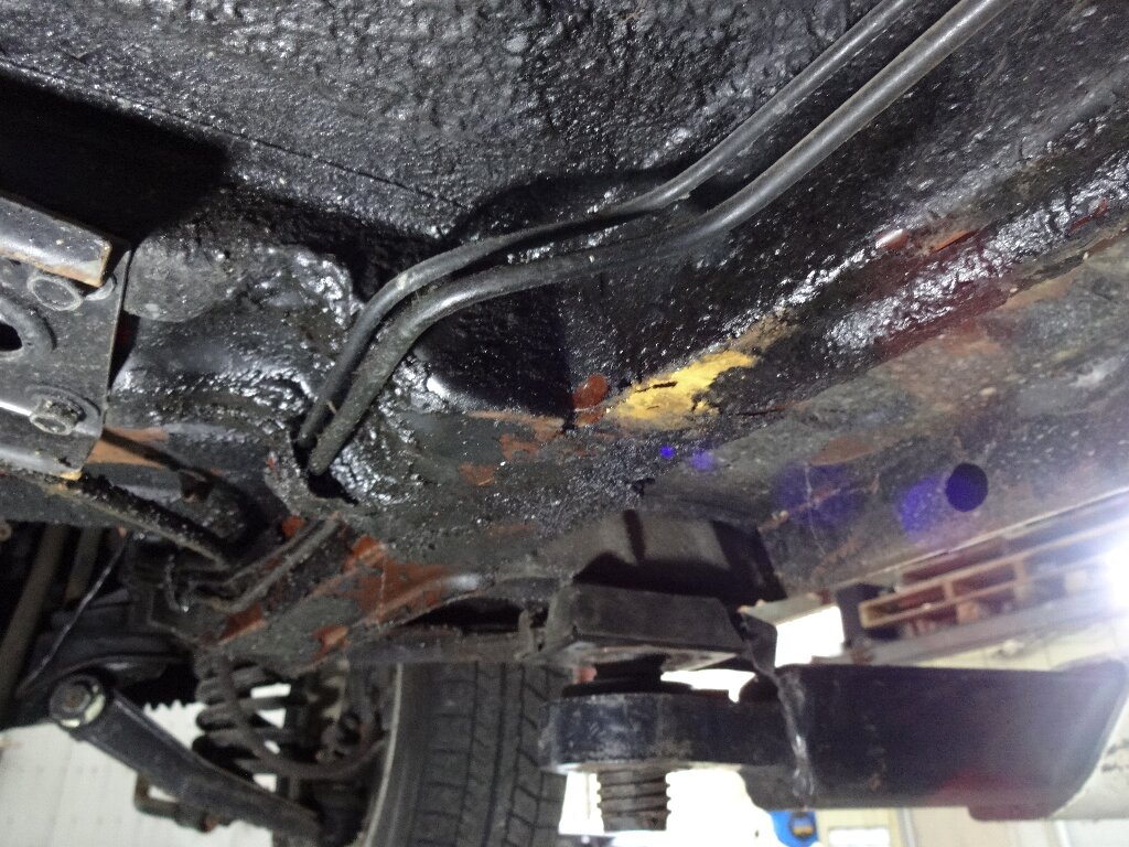運転席側のフレーム部分だけ盛大に脂ギッシュです。この油はどこから来るのやら?