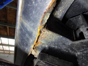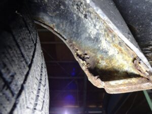 また自作と思われるリアフェンダーですが、折り返し部分がかなり腐ってます。