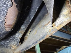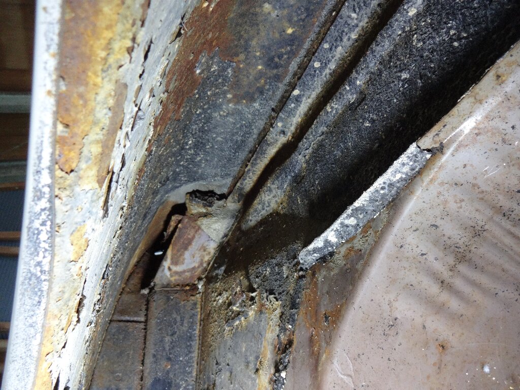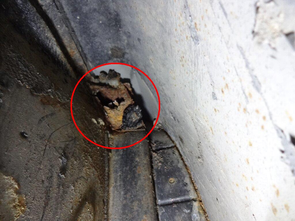んで錆腐りですが、多分この部分袋状になってるのですが、潰れて排水が上手く行かずに中に水が溜まってた形跡があります。