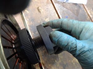 まずはカバーにディスクを合わせて、ディスクのインプットシャフトに合うアタッチメント取り付けて、先端部分を挿入します。