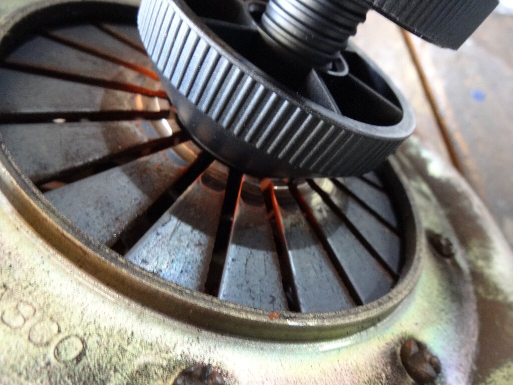 この状態でカバーをエンジン側に固定してから、クラッチアライメントツールを抜き取るという事になります。