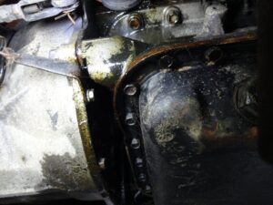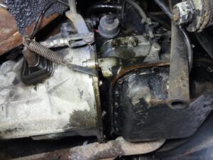 リフトで上げるとエンジンとミッションの接合部からなんですが、
