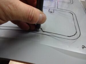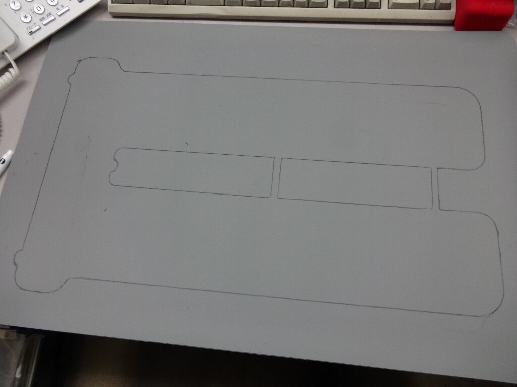 そして型紙を元に内周を書き込むのですが、結局のところ、ほぼ定規とフリーハンドで書きました。