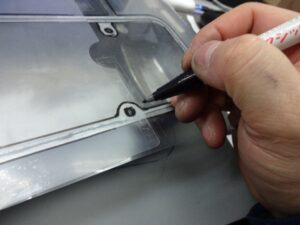 どうやってネジ位置の転写とカバー内側のカット線入れようか?と暫し思案。。。