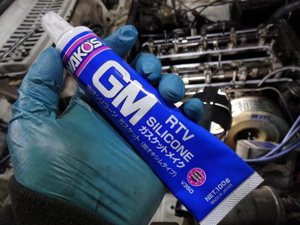 そのまま乗せると位置がズレそうだったので、ヘッド側に接着する為に液体ガスケット使いました。