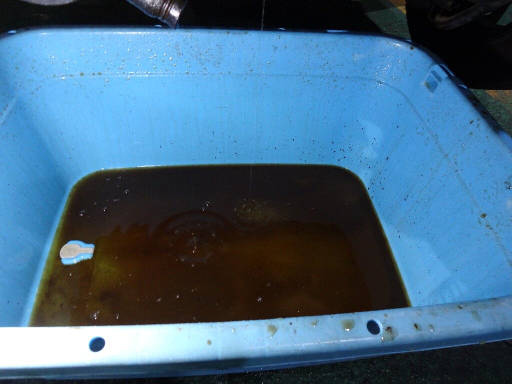 プラスチック製のドレンを外そうと思ったら、ネジの頭が一瞬で崩壊したので、強固に固着したロアホースを何とか外して水を抜きました。外した途端凄い色の水が、、、エンジン内部はかなり錆びてるんでしょね。