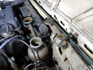 ラジエターキャップ外して内圧も抜いておきます。