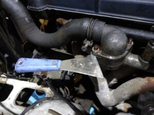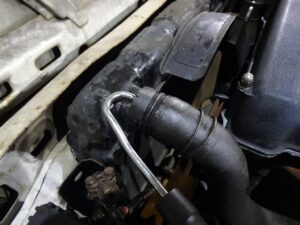 そして固着したアッパーホースを剥がしたのですが、全然ホースが抜けて来ないので、
