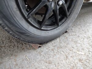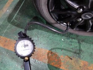 押そうと思ったらクソ重くて、左リアタイヤがペチャンコでした。スローパンクなのかな?とりあえず高圧の方が押し易いので4キロほど入れておきました。
