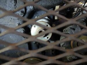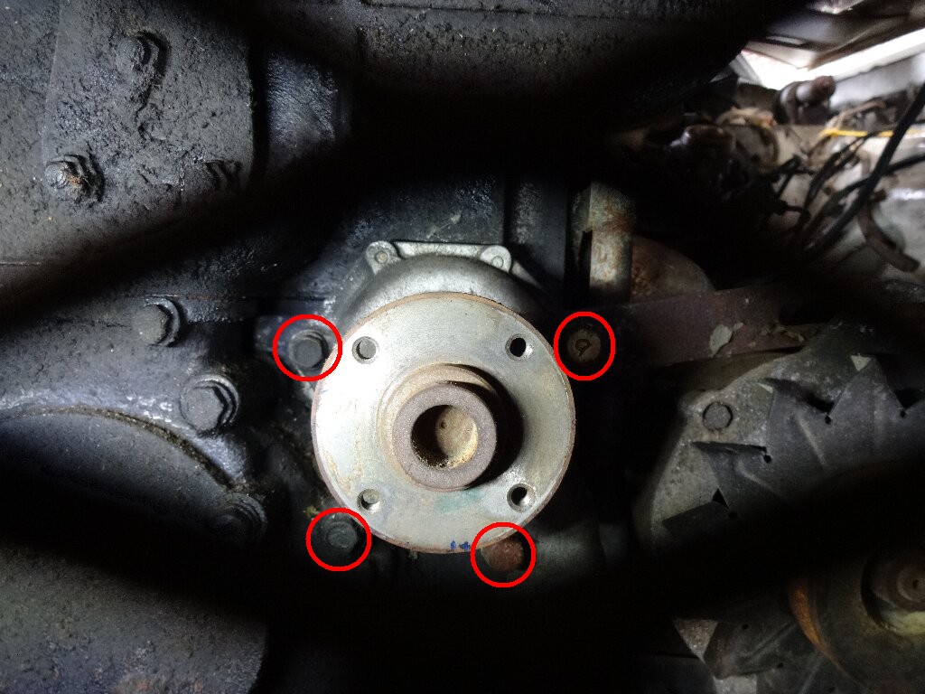 懸案のウォーターポンプですが、グリルの隙間から眺めてると、