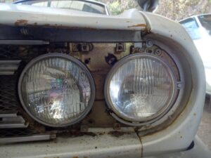 資料が無いので困りりモノなんですが、とりあえずヘッドライトのベゼルを外してみました。錆びた皿ビスを緩める度にドキドキします。。。『パキン』という音と共に緩んでも、その先ビスが抜けきるまで気が抜けません。