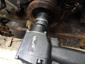クランクプーリーを留めてるボルトを外すのですが、当初ブレーカーバーで緩めようと思ってもクランクが回ってしまうので、久々にエアインパクト引っ張り出して来ました。