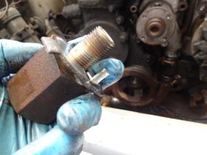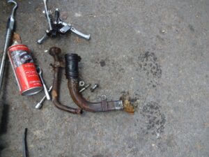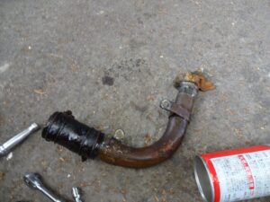 プーリーに阻まれてた冷却水配管のクランプボルトがようやく抜き取れました。