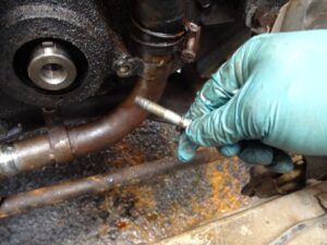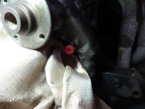 そしてウォーターポンプを留めてる最後の折れボルトなんですが、