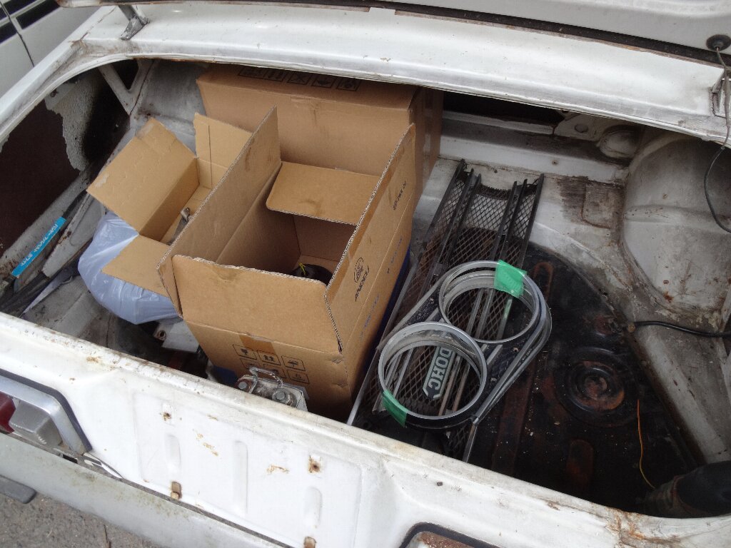 外した部品を整理して箱に収め、ボルト類は小分けに袋に入れてマジックでメモ書きしました。