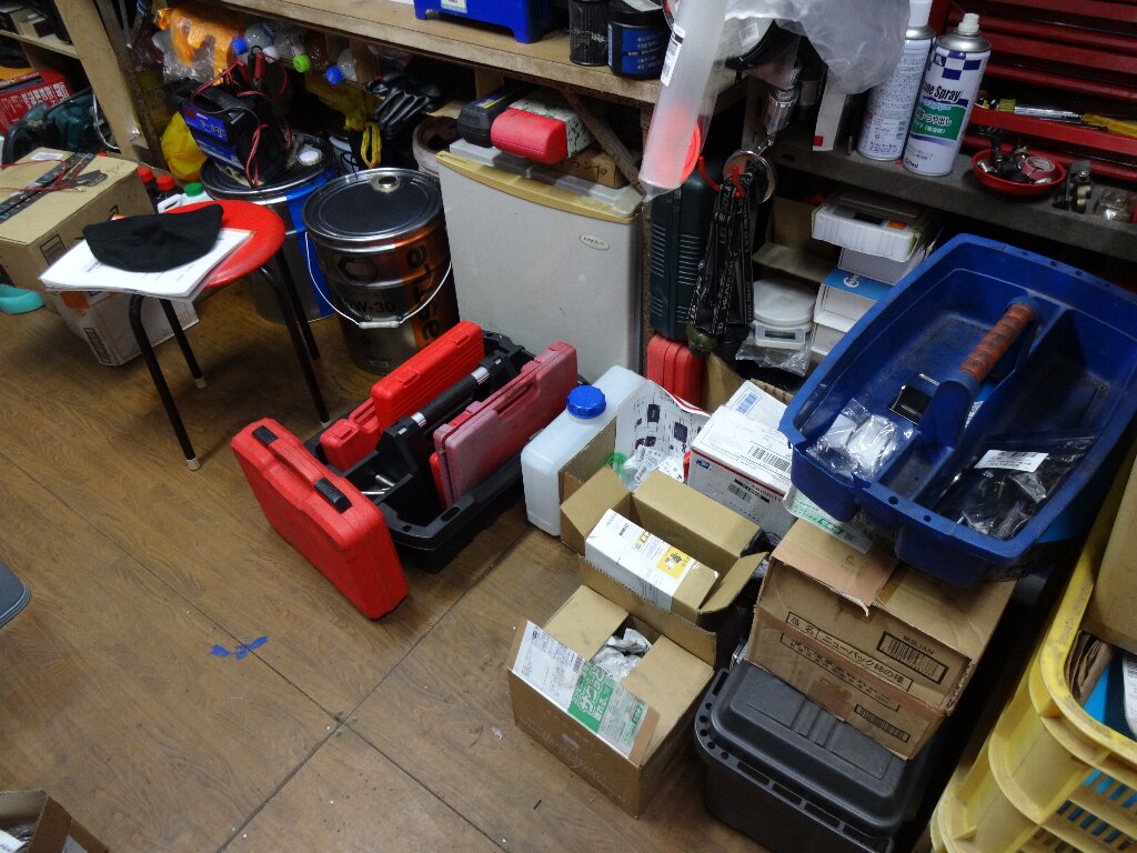 お陰様でこの辺りもチョット片付きましたが、特殊工具の入った赤いケースはどこかにまとめて片付けたいところです。