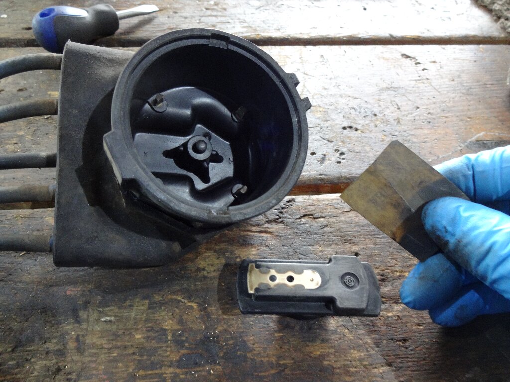 とりあえずキャップとローターの金属部分を耐水ペーパーで磨いてから、パーツクリーナーで掃除し、最後にコンタクトスプレー吹き付けて、余分に掛かった部分は拭き取っておきました。