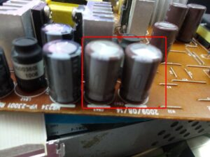 この膨らんだコンデンサーを2個交換します。