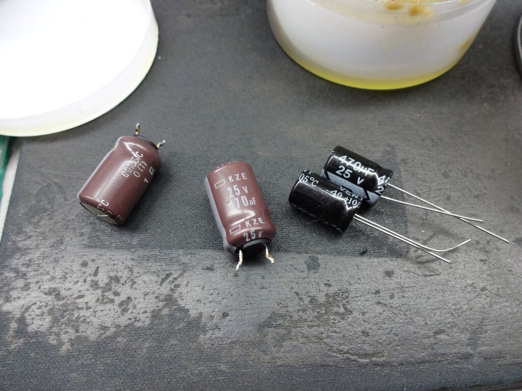 外したコンデンサーですが、同じ25V470µFでも大きさが違ってます。