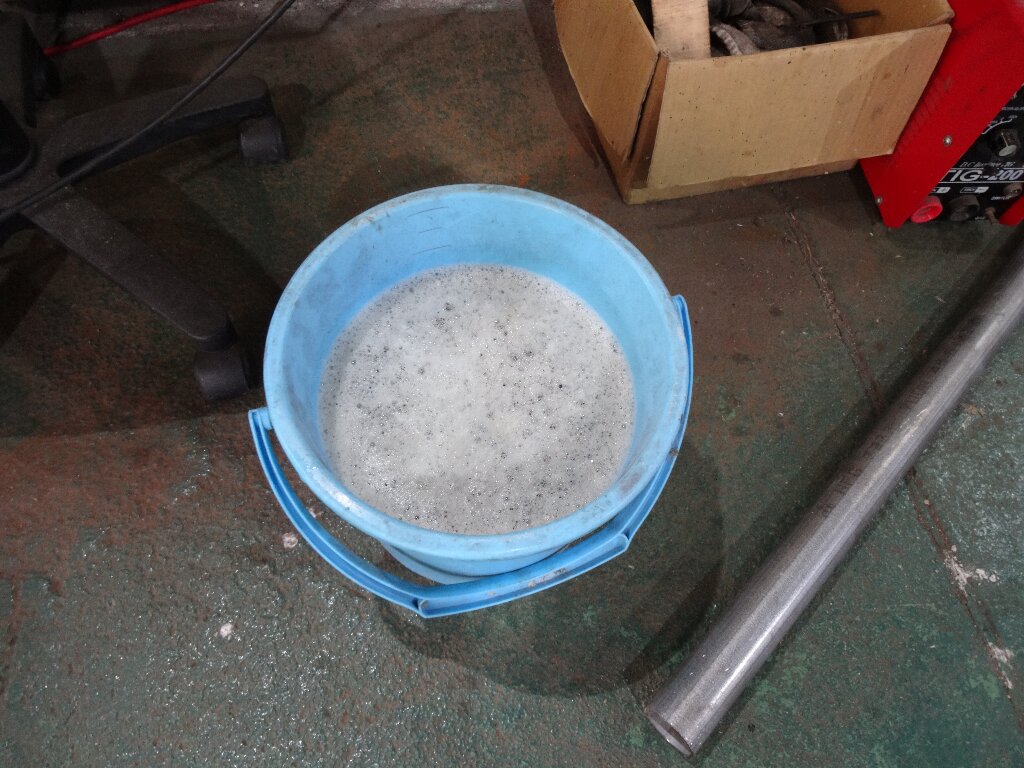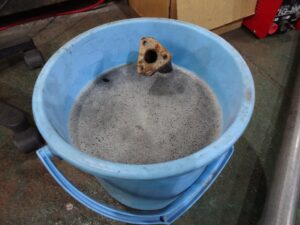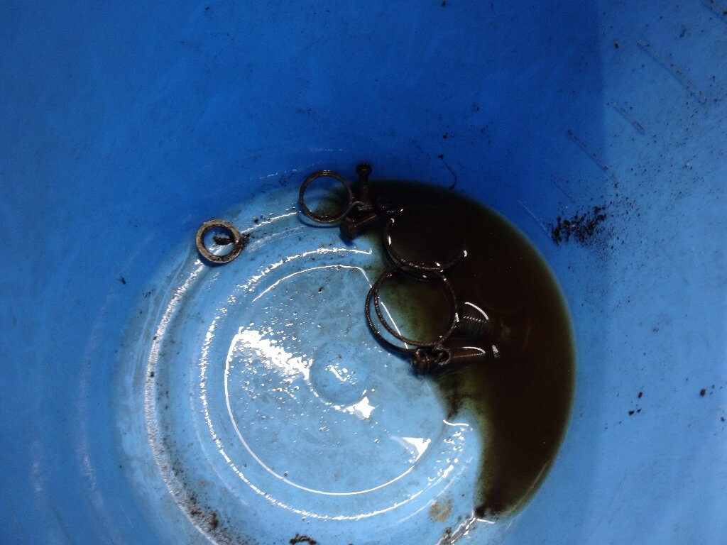 少し大振りなバケツに替えて、溶剤も一杯まで継ぎ足して、全て浸かる様にしました。
